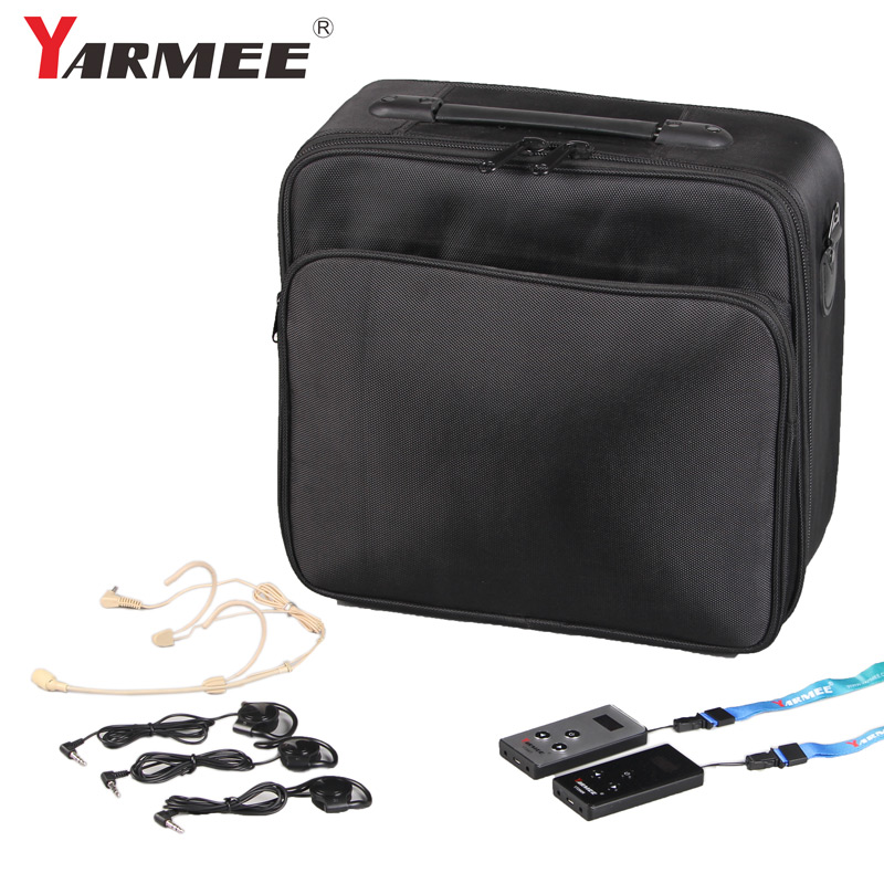 我們的YT200導游系統提供了兩種不同的套裝,一套用于2個發射器和30個接收器,帶有便攜手提箱,易于攜帶。
